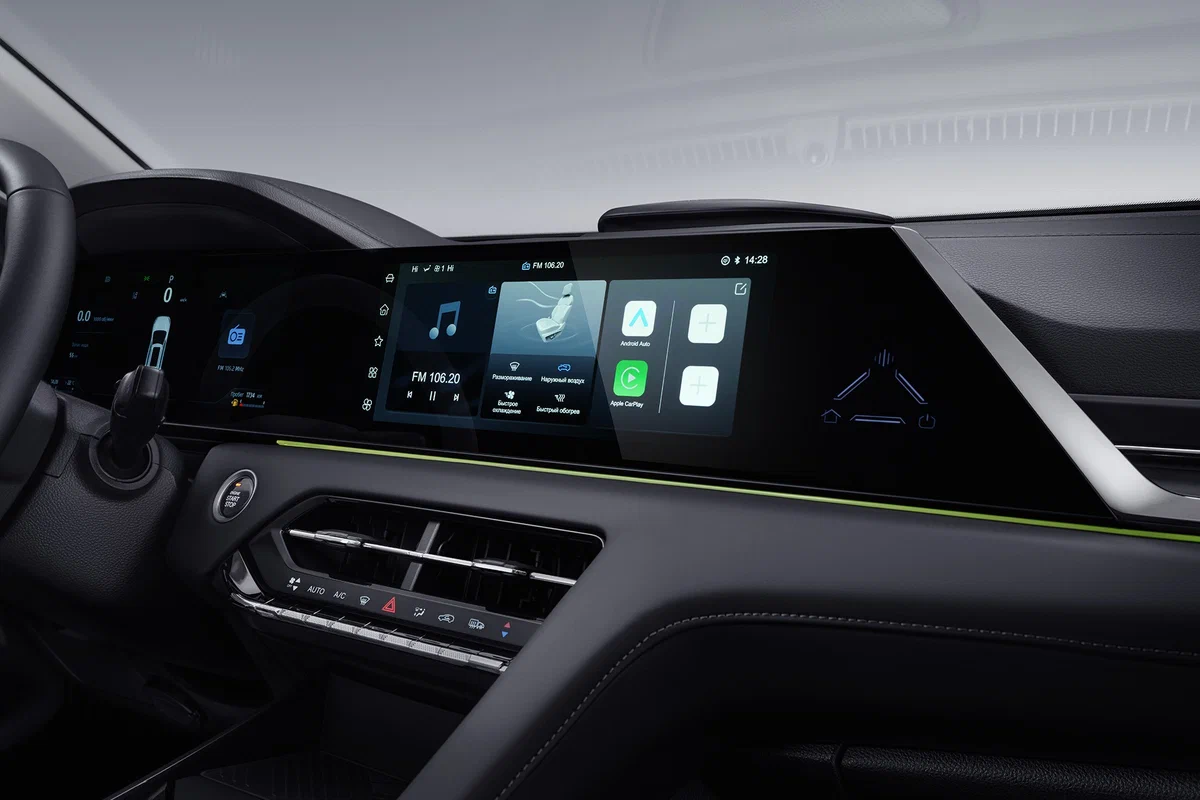 - Мультимедийная система 12,3" с 12 динамиками (с сабвуфером) и поддержкой MP5, Bluetooth, Apple CarPlay и Android Auto